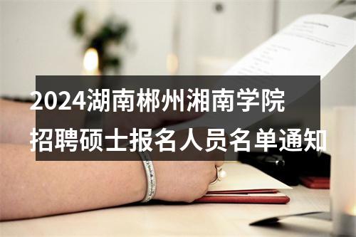 原标题:关于公布2024年湘南学院公开招聘硕士报名人员名单的通知