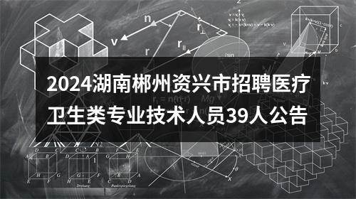 【2024湖南郴州资兴市招聘医疗卫生类专业技术人员39人公告】相关岗位: