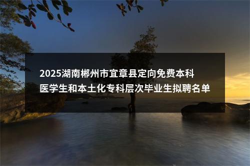 声明:专注 2025湖南郴州市宜章县定向免费本科医学生和本土化专科层次毕业生拟聘名单公示 相关岗位分析;专业指导面试技巧;保障就业成功概率。